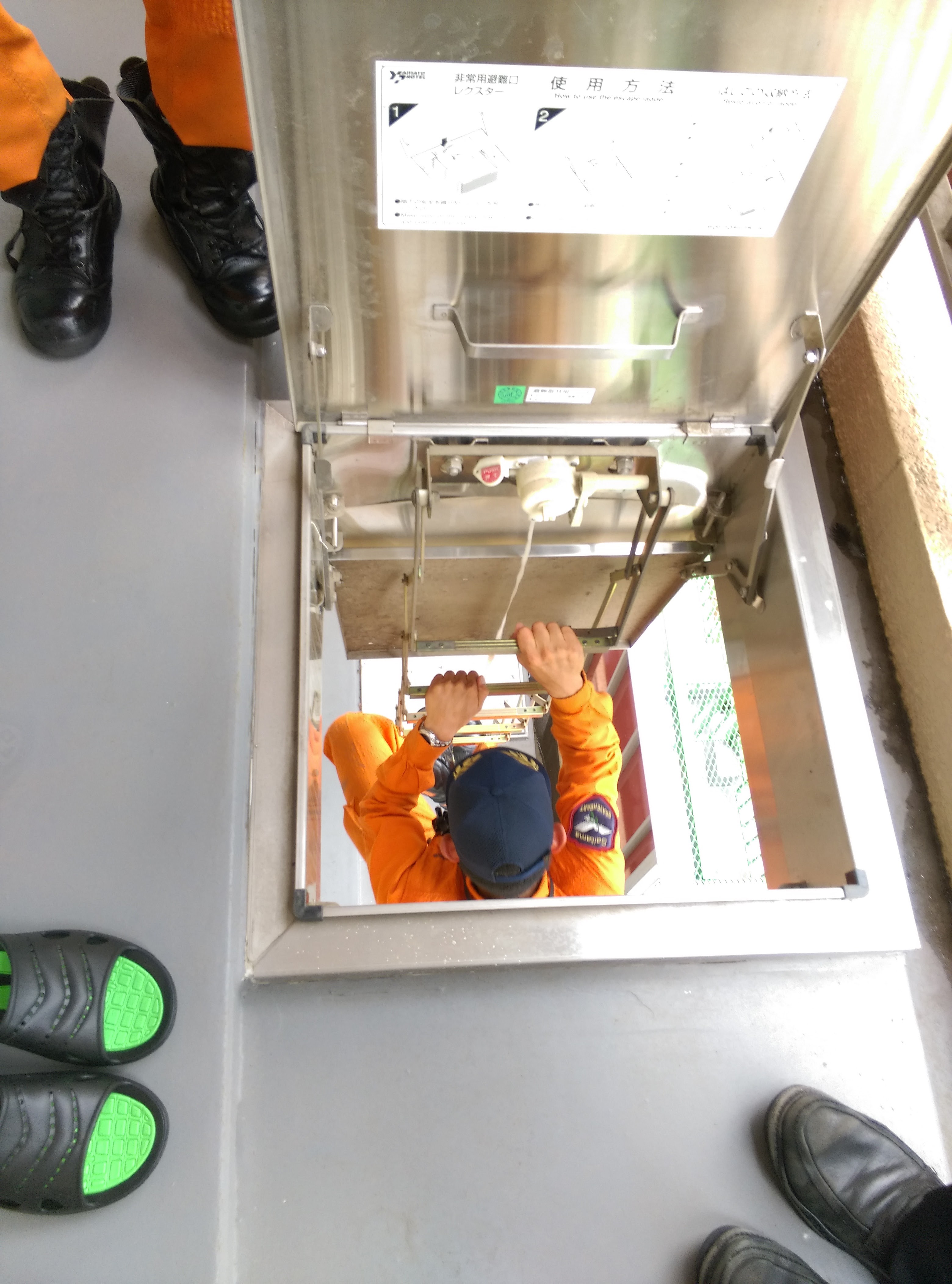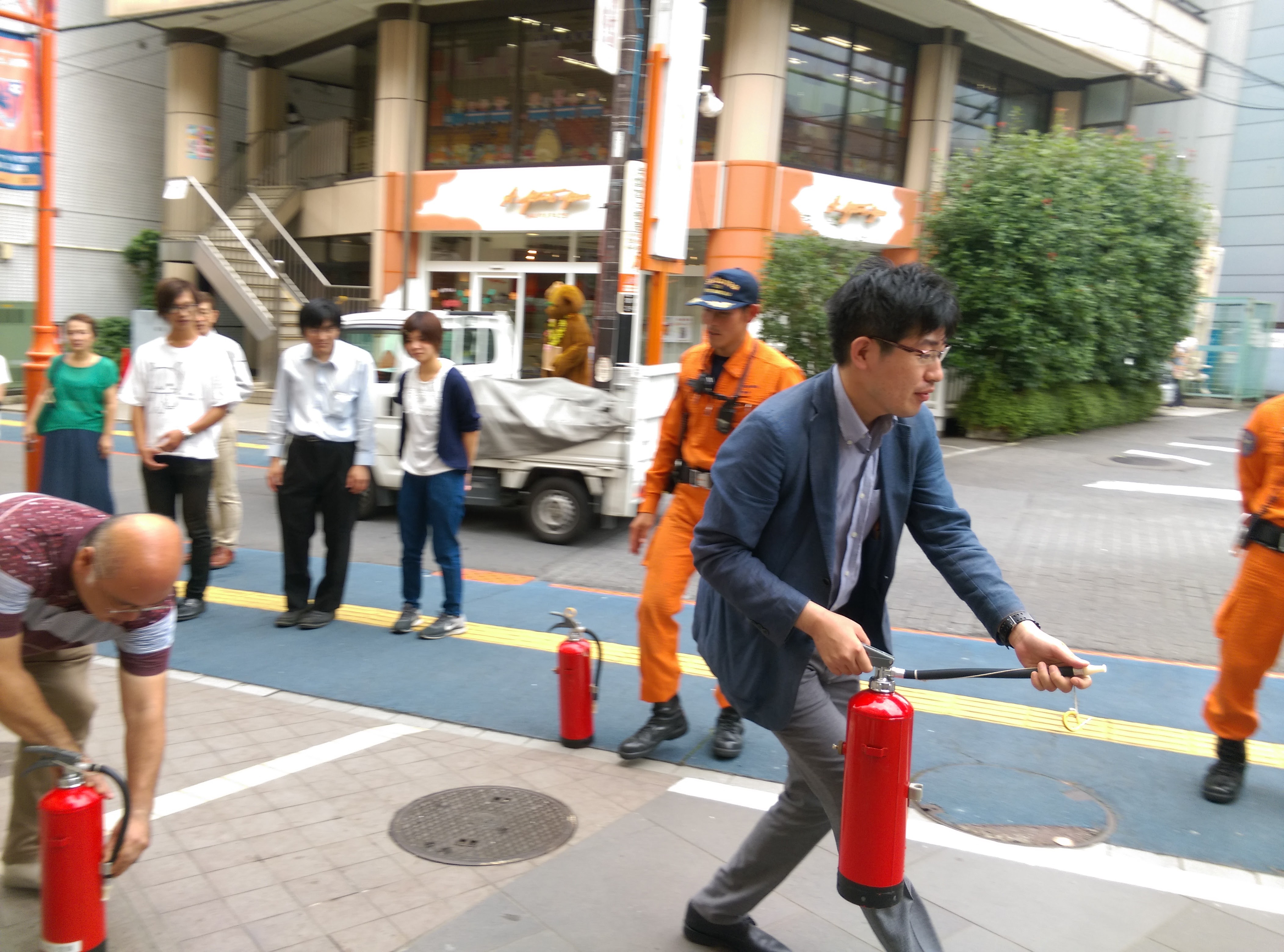 401号室に特定非営利法人の「ゆうの樹」さんが入居されたのを機に、ABC bldg.で消防訓練を行いました。