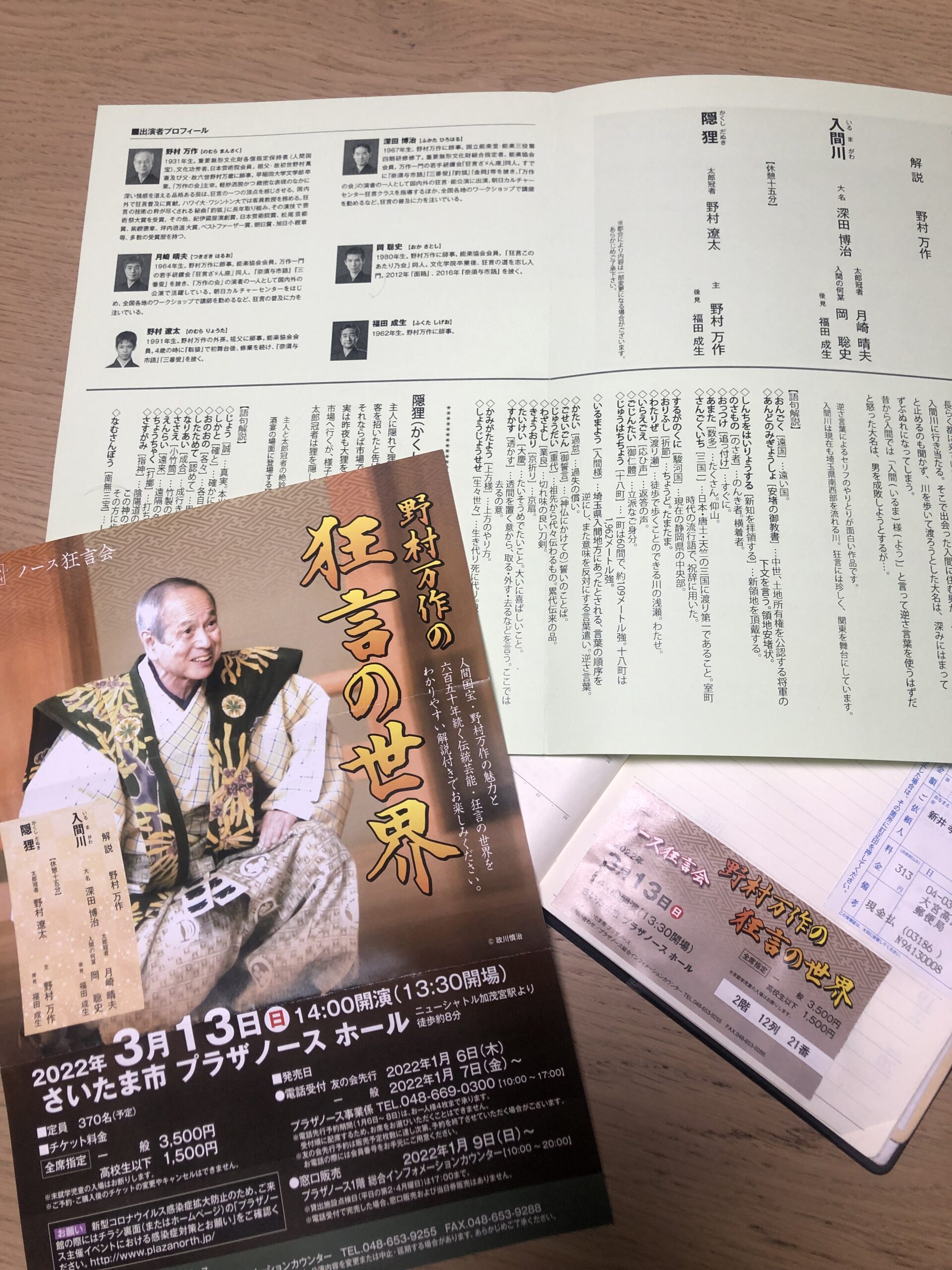 先日、野村万作さんの狂言がさいたま市のノースプラザであった。コロナで昨年、一昨年と中止になり、3年ぶりの公演だった。御年90歳と思えぬ姿勢の良さ。声の張り。見事な演技。感服した。毎日の精進が出来てないと、あの演技は無理でしょう。心身の充実ぶりが分かる。