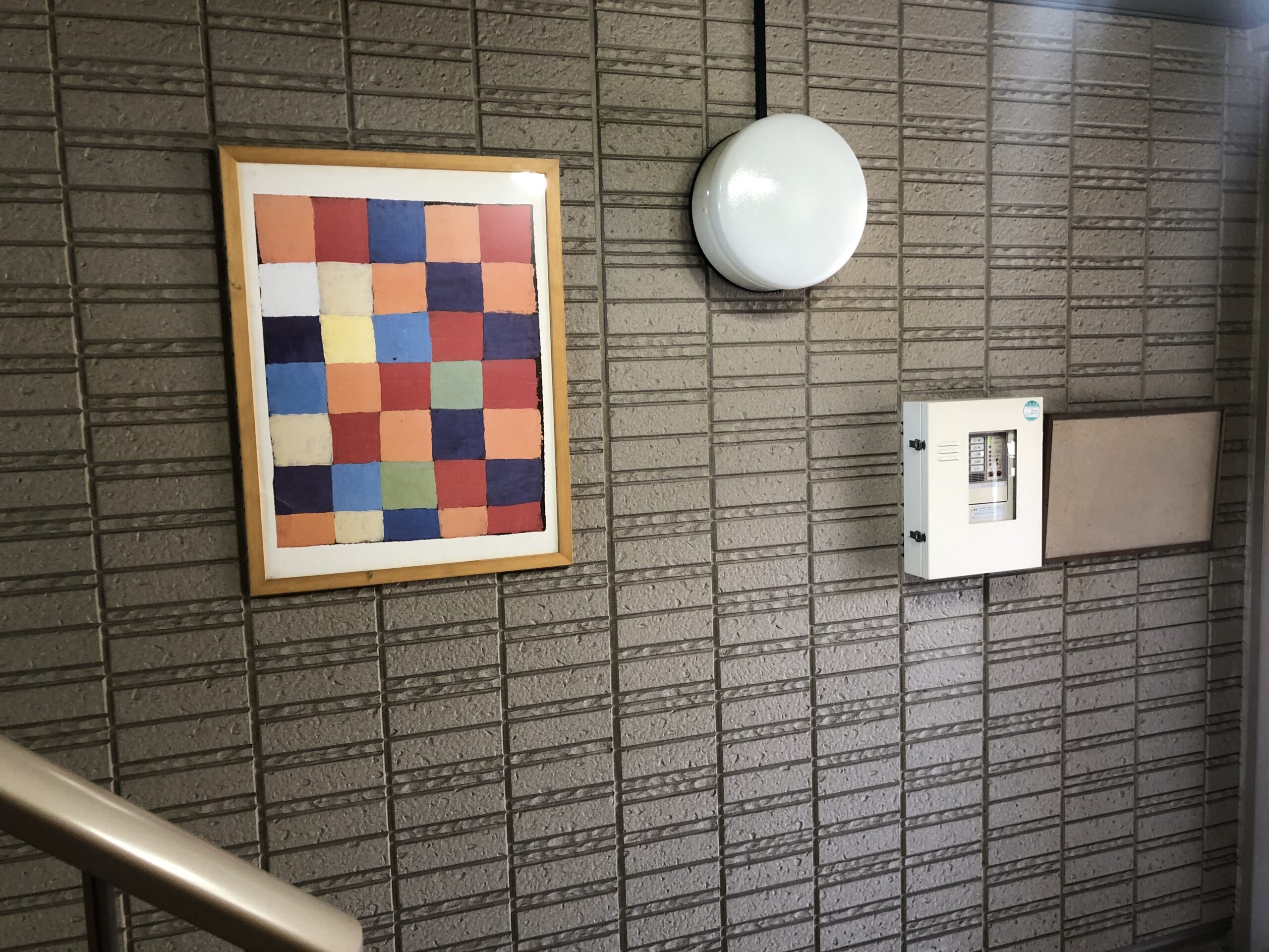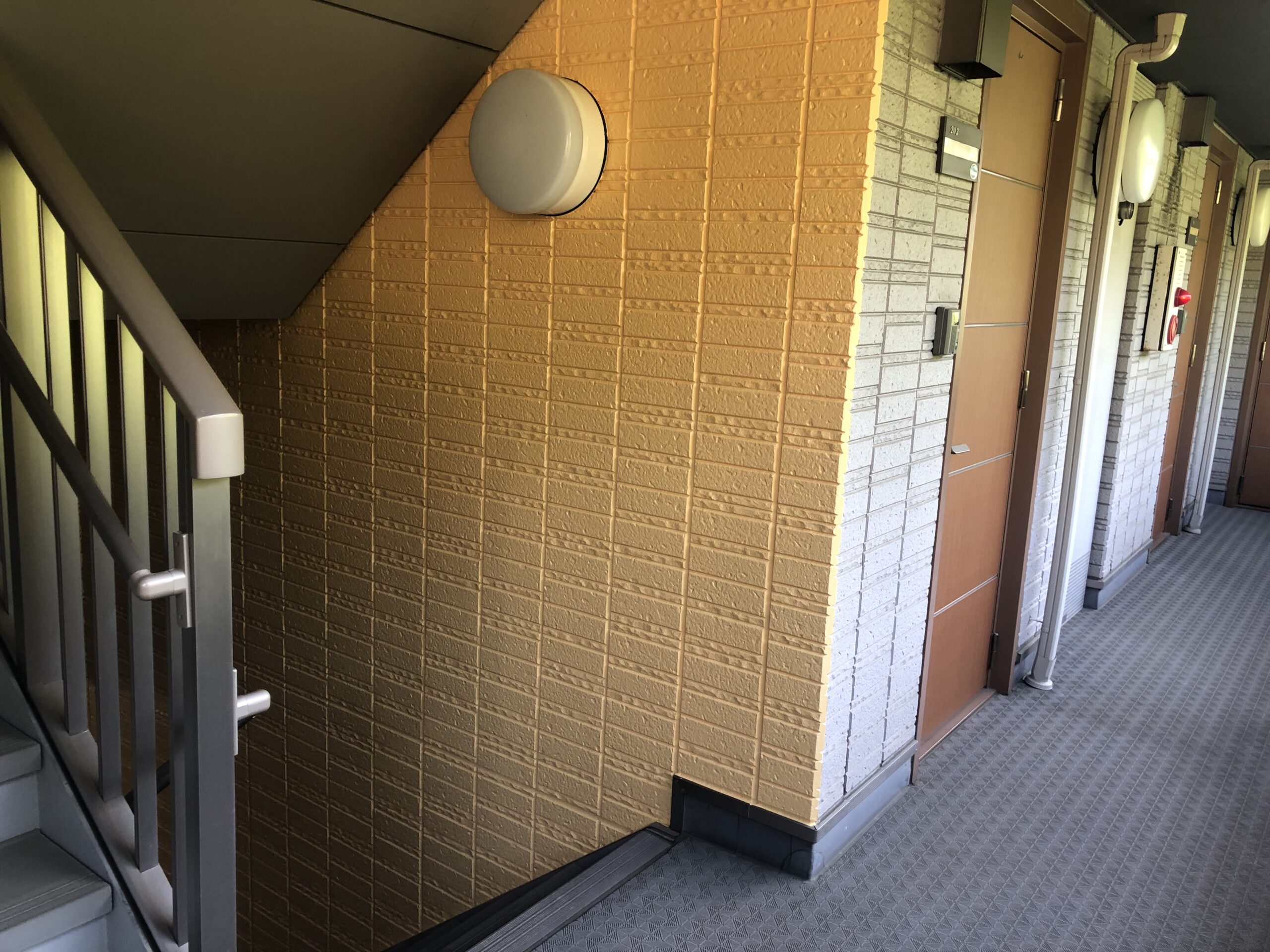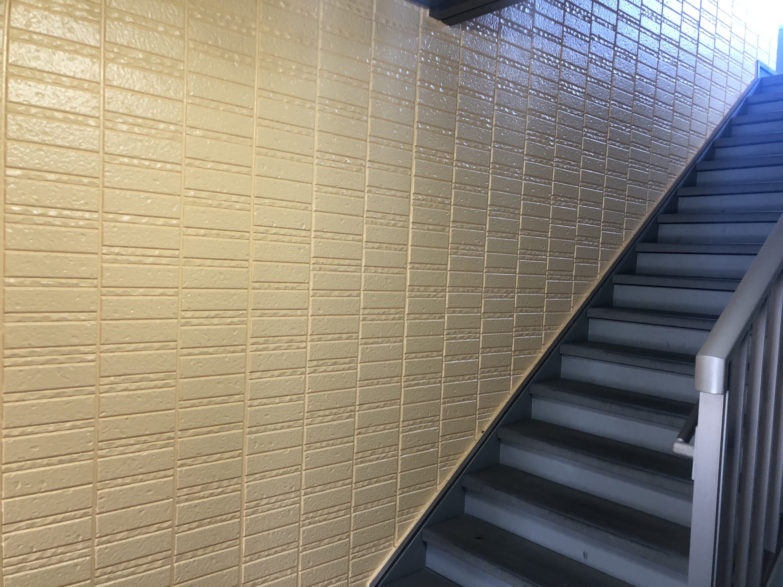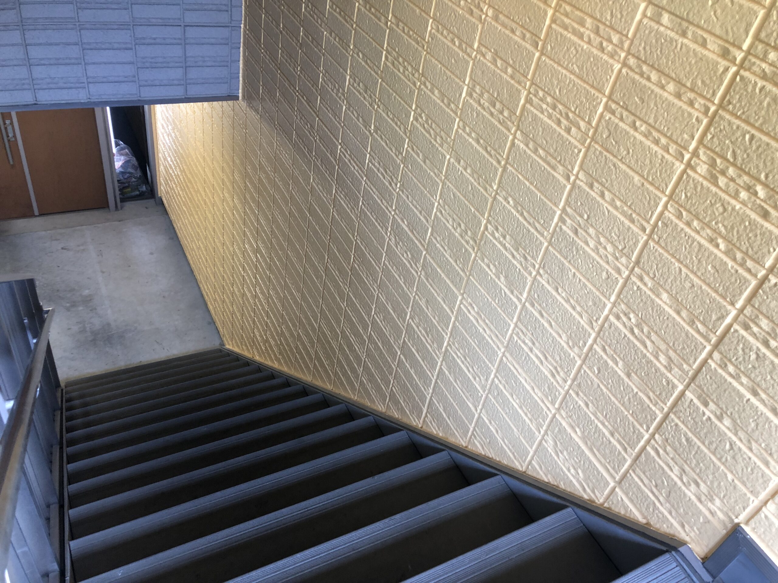 2階から1階に降りるとき、右側の壁を明るいベージュ色に塗り替えました。