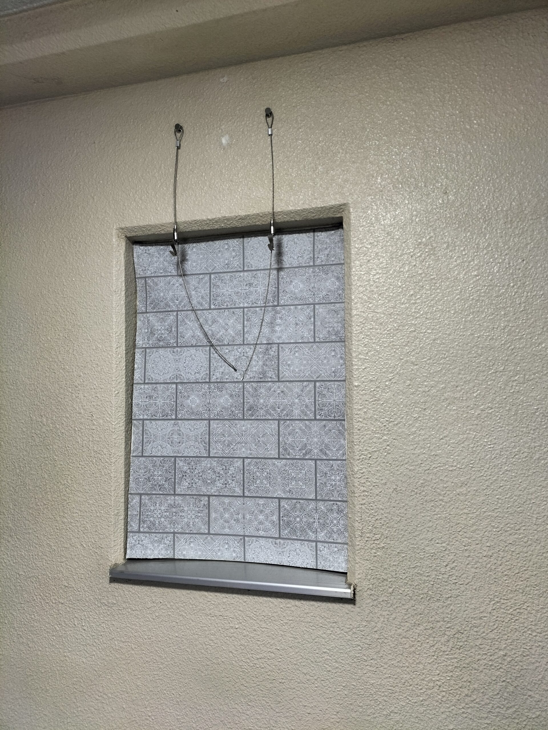窓をふさいだ龕を覆う形で額を掛けることに決め、掲示の方法を考えます。