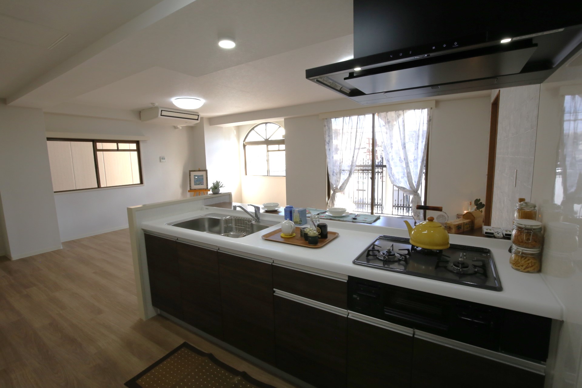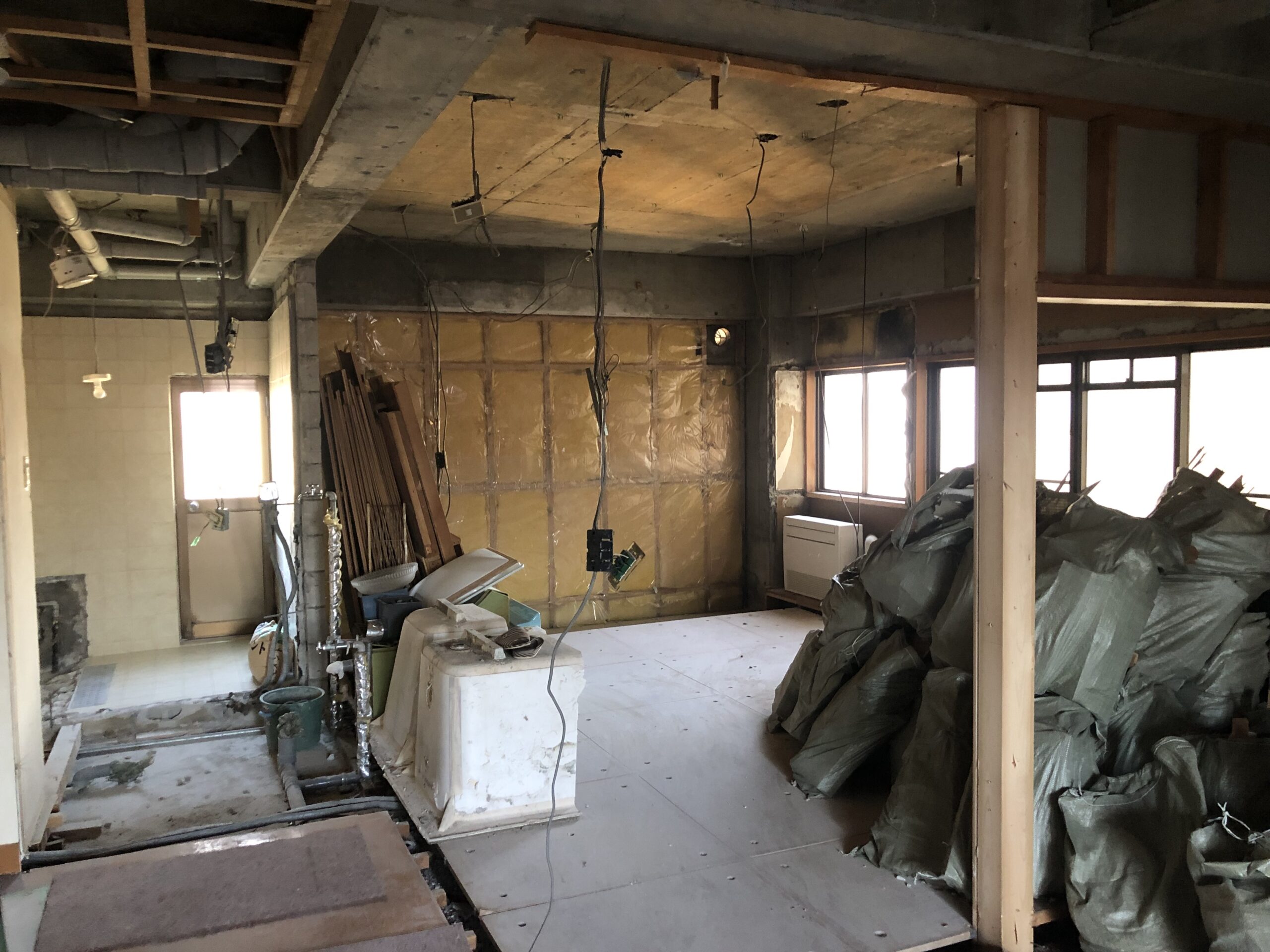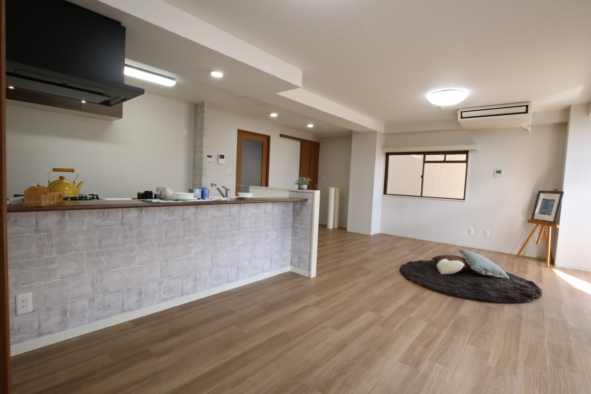 大宮・東大成の赤芝交差点にある築40年の物件を大規模修繕しました。外壁を補修し、ベージュを基調とした色で品よく(?)まとめました。広さ88㎡あるオーナールームは思い切ってほぼスケルトンにし、フルリフォームしました。