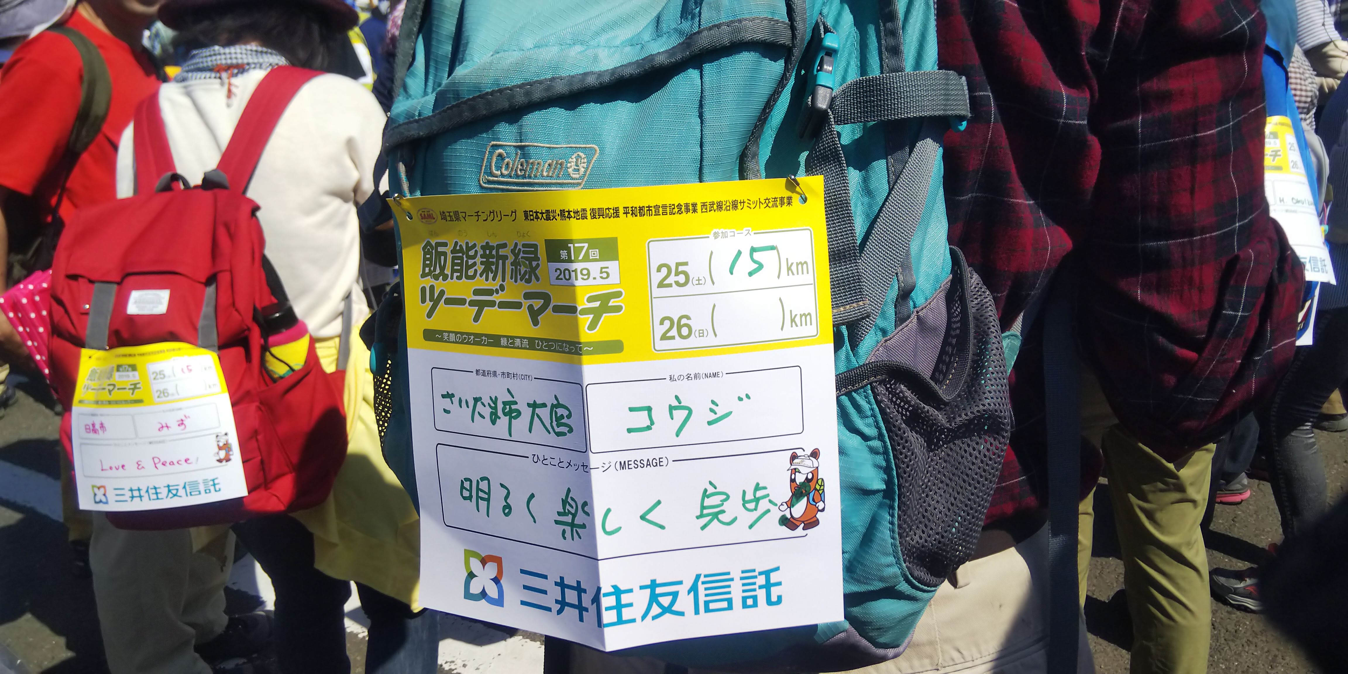 お知らせ 飯能15キロウオーク 全員完歩 2019年の5月、陽光きらめく中、孝治、陽子、小松の3人で飯能市の15キロ新緑ウオークに参加し、全員完歩しました。やったぜ! 天気に恵まれ、暑いぐらいでしたが、天覧山からの眺め、飯能河原の水辺ウオークなど楽しかったです。 ゴールで飲んだビールのおいしかったこと。孝治はもう帰りましたが、陽子はこの後、ムーミン谷へ行きました。元気がいいね。若いってことは素晴らしい。 « 一覧へ戻る »
