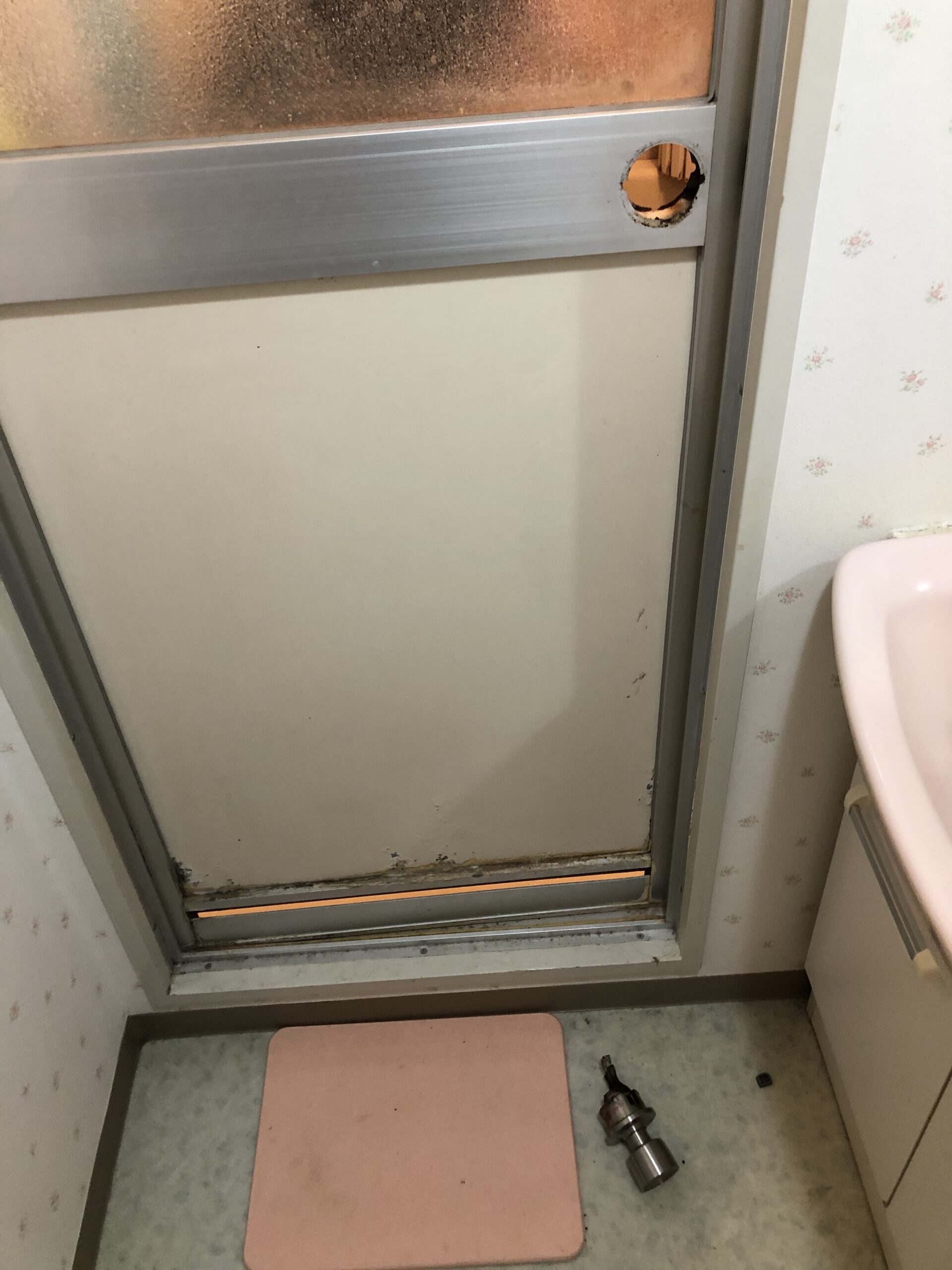 さて、そんな中、当社の管理する賃貸物件にはユニットバスではありますが、折り戸タイプではなく「ドアノブが付いた普通のドア」があり、今日はその修理のお話をしようかと思います。