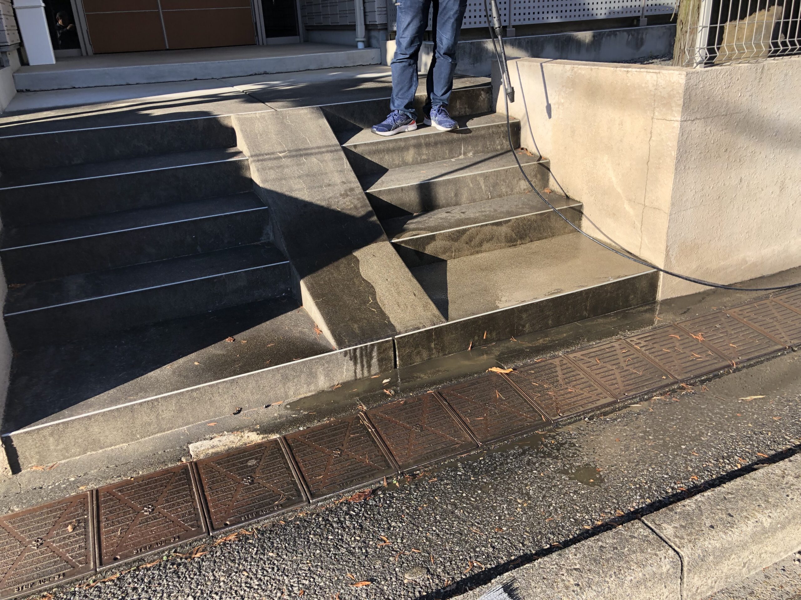 First Residenceは某Sハウスさん施工のちょっぴりグレードの高い建物です。しかし、築16年も経過すればある程度は仕方のないことですが、エントランスの階段部分をはじめ、コンクリート部分の黒ずみが少々目に付く場所があります。